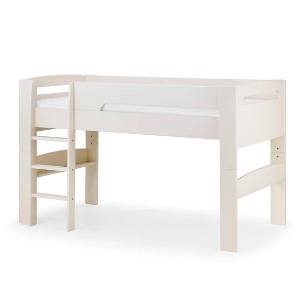 A sturdy and stylish mid sleeper with a smooth stone white lacquer finish. The contemporary Pluto Mid Sleeper Bed features a robust ladder which can be assembled on either the left or the right hand side. A functional and practical choice, this mid sleeper can be converted into a single bed if required in the future.