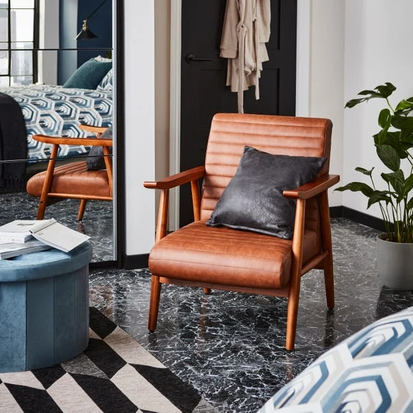 Get ready to sit in style with the Quinn Faux Leather Chair! This bad boy is soft to the touch and made with 100% polyester fabric, filled with comfy foam, and built with a sturdy rubber wood frame. Whether you’re snuggling up with a good book or entertaining guests, this chair will have you feeling as smooth as its faux leather exterior.