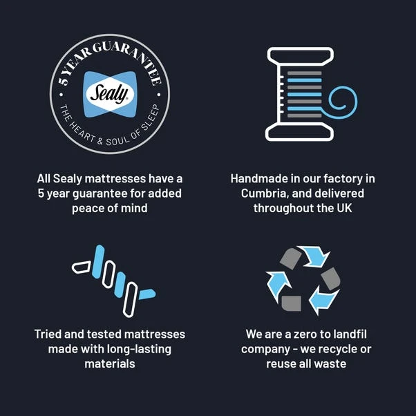 This mattress is perfect for people who are looking for a soft to medium mattress with a cocooning, yet supportive feel. The PostureTech CoreSupport spring system provides long-lasting support, with springs that get firmer as pressure increases for deep down support and pressure relief. The edge sprung system extends the sleeping area and adds durability.