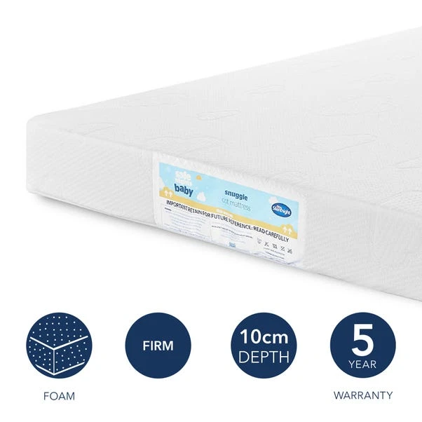 Give your little one the gift of safe and comfortable sleep with Silentnight’s Snuggle Cot Mattress. Our foam and chemical treatment-free mattress is designed to provide a pure sleeping experience for your baby. The extra-comfortable, breathable polyester core, coupled with the hypoallergenic sleep surface, creates the perfect sleeping environment for your baby. The beautiful cloud pattern fabric design adds a touch of whimsy to your nursery décor. Plus, our mattress is tried and tested to the highest standards in our SATRA-approved testing lab, ensuring the safest possible sleeping environment for your baby. Our machine washable cover and handmade construction in the UK with a 5-year guarantee provide peace of mind and longevity. Trust the UK’s most trusted sleep brand, Silentnight, with over 75 years of sleep expertise to keep your baby sleeping soundly.