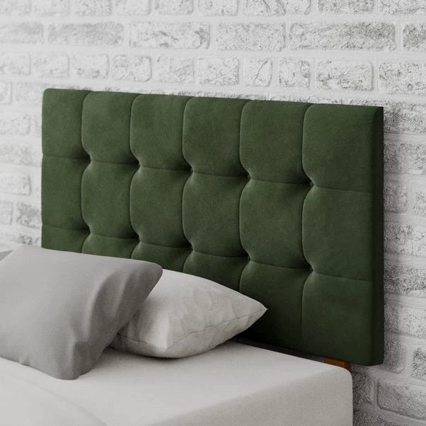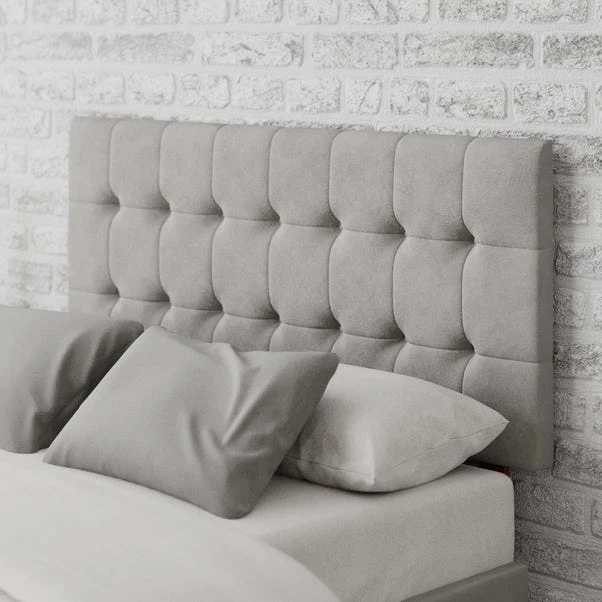 If you’re looking to make a stylish enhancement in your bedroom, the luxurious look of this headboard from the Sinatra range can add plush texture to your bedroom décor and comfort to your bed. Creating a decorative feature, this headboard is hand upholstered in a plush velvet fabric with a contemporary square pattern, deep buttoned design details and deep padding for added comfort. Handcrafted with a 15mm thick panel and with solid mahogany struts ensure your headboard is sturdy and long lasting for years to come and the deep polyester padding will add a comfortable and supported surface. Available from single to super king sizes, this headboard is suitable for all standard bed bases making it a convenient and simple upgrade to your existing bed frame and a range of stylish colours to make it a versatile choice for various bedroom aesthetics.