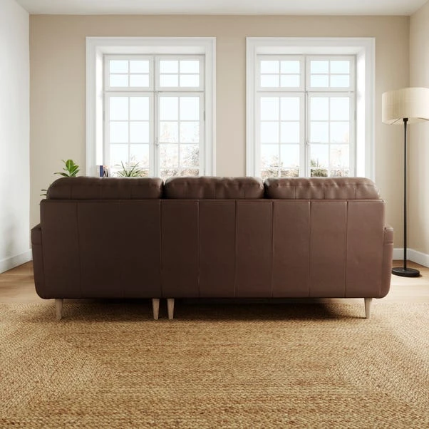 Generously proportioned and elegantly designed, the Sven corner chaise sofa offers ample space for family and friends to gather. Its expansive chaise invites leisurely lounging, while the supportive cushions ensure long-lasting comfort. The smooth leather upholstery exudes sophistication, complemented by precise stitching and a refined silhouette.