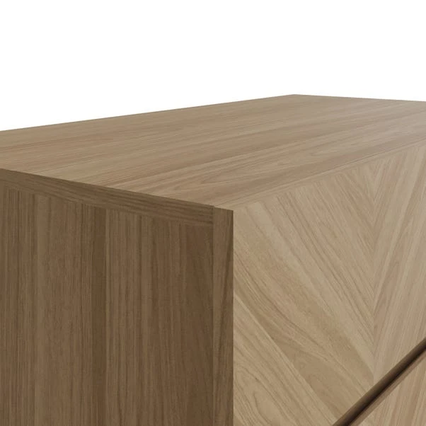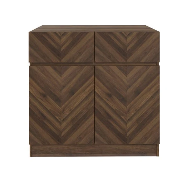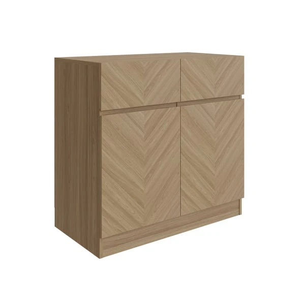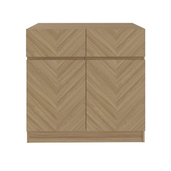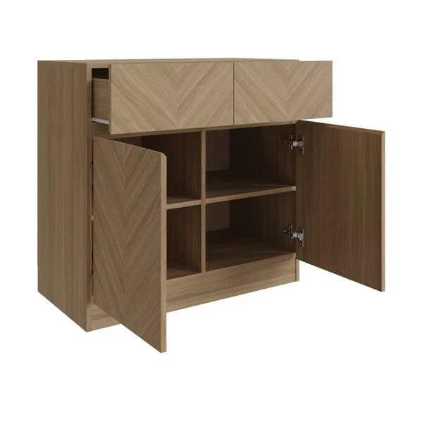 With two spacious drawers and two doors boasting right-angled wood grain finishes, this sideboard provides ample storage space for your belongings whilst adding a touch of sophistication to your decor.