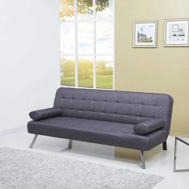 The Tobi Fabric Sofa Bed features a classic design which is durable and will blend in seamlessly with your other furniture. This stylish piece is the perfect fit for your living space, giving you extra room when guests come to stay. With its sturdy metal legs and frame as well as a comfortable foam filling, this sofa bed features an easy click-clack system which allows you to transform from sofa to bed and back again.