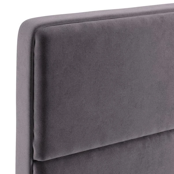 This velvet horizontal stripe headboard is a full height floor standing headboard with a classic elegant design.