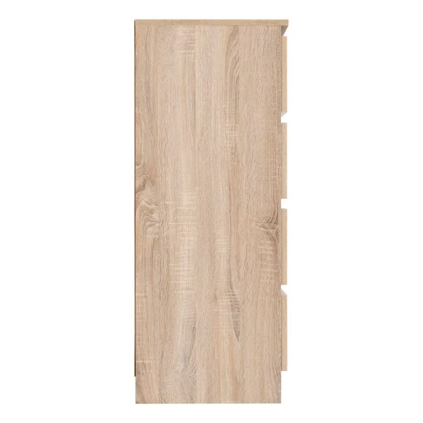 Featuring four spacious drawers, this chest provides ample space to neatly organise clothing, accessories, and personal items. Crafted from durable materials, this chest ensures longevity and reliability in everyday use. Its clean lines and choice of multiple wooden finishes, including classic oak and contemporary grey, allow it to effortlessly complement various bedroom aesthetics. The sleek design is accentuated by discreet handles, adding a touch of sophistication to your bedroom decor.