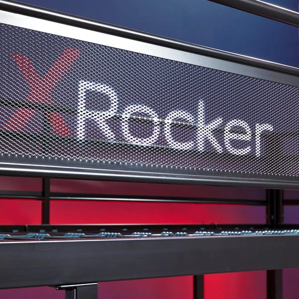 Prepare to conquer your gaming battles with X Rocker’s innovative Fortress Gaming High Sleeper Bunk Bed with Shelves & Desk. This versatile set up is excellent for gaming and equally practical for a child’s bedroom with a strong and durable metal frame construction to provide stability, long-lasting comfort and features spacious under-bed storage with a built-in desk, and 3 generous shelves to store consoles, accessories and PC hardware. The integrated desk space or TV stand is sized to house PC monitors up to 40” for the ultimate gaming set up.