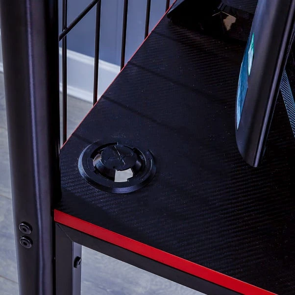 Perfect for resting between gaming tournaments, the X Rocker Icarus XL Gaming High Sleeper Bunk Bed is excellent for gaming and equally practical for a child’s bedroom with a strong and durable metal frame construction to provide stability, long-lasting comfort and a space saving design for smaller bedrooms. With a spacious under-bed storage and built-in desk with alcove edging, this set up provides the ultimate gaming platform for PC gaming with a single monitor setup up to 32” and can be assembled on the left- or right-hand side of the bed frame.