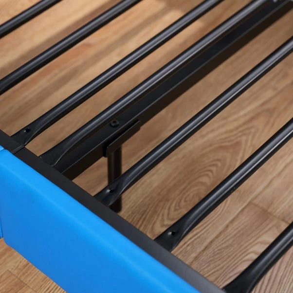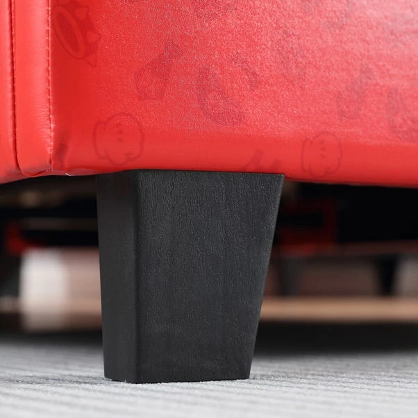 This single bed frame transforms bedtime into a journey through the Mushroom Kingdom, showcasing the beloved gaming duo – Mario & Luigi – on its vibrant blue printed finish. Perfectly designed for junior gamers, this standard UK single bed frame (3ft/90x190cm) features a plush upholstered faux leather headboard that promises comfort and smiles every time you tuck in. Partnered with Nintendo® of Europe, this Super Mario Brosâ„¢ licensed gaming bed meets the highest standards of design and durability, ensuring Nintendo enthusiasts game in ultimate comfort and style. Engineered for younger players, this bed’s low-to-floor build and rounded edges prioritise safety. With soft, durable foam-padded upholstery and reinforced metal bed slats, this gaming bed guarantees unrivalled comfort for gaming and relaxing. Delivered flat-packed in a single box with straightforward instructions, assembling the Super Marioâ„¢ Gaming Bed is a breeze, offering a quick setup for countless dreamy gaming adventures.