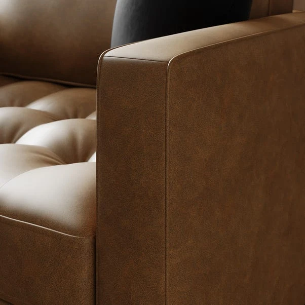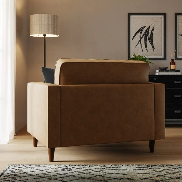 Upholstered in faux leather, this sofa offers a sleek and modern look. Sink into its plush cushions and unwind after a busy day. With its snug design and generous seating area, it’s perfect for lounging or entertaining guests. The faux leather material is durable and easy to clean, ensuring long-lasting use.