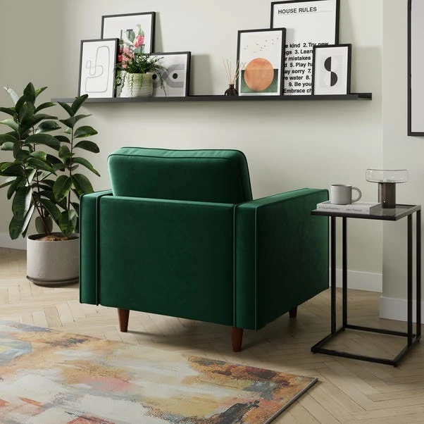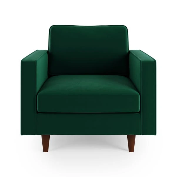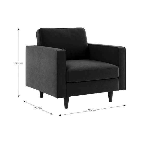 The Zoe Armchair brings comfort and sophistication to any room. Upholstered in high-quality velvet, this armchair offers a plush and inviting place to sit while enhancing your space with its luxurious texture. Its sleek design and plush cushioning make it a versatile addition, ideal for creating a cosy reading nook or as a complementary accent in your living area.