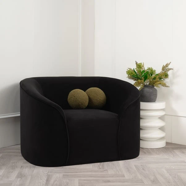 This sleek contemporary occasional armchair will fit right into a modern aesthetic. With its black velvet fabric and curved design, this is a standout piece to make a statement. Extra filling ensures a comfortable seat, and with coordinating items available, a cohesive look is easy to achieve.